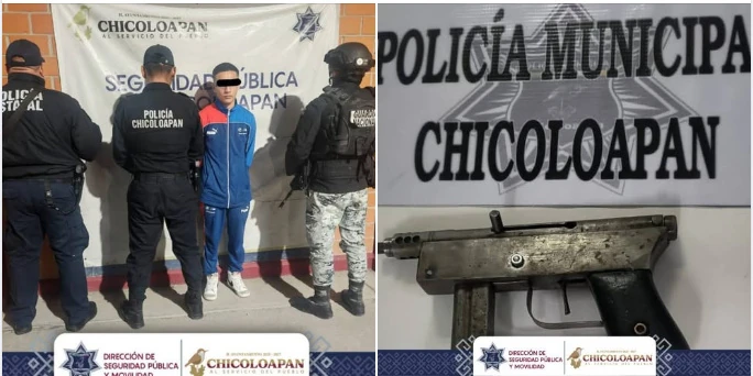 Saludos. La Dirección de Seguridad Publica de Chicoloapan informa sobre 2 acciones, en la más reciente, informan sobre la captura de un sujeto por el delito de disparo de arma de fuego, lo detalla de la siguiente manera: