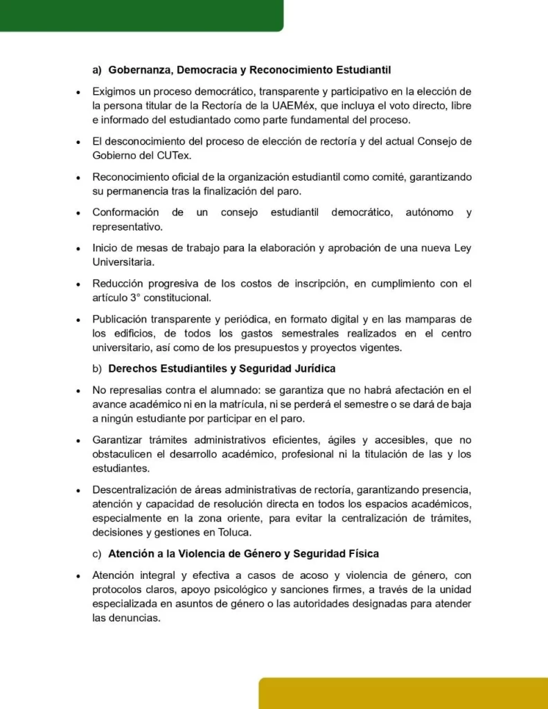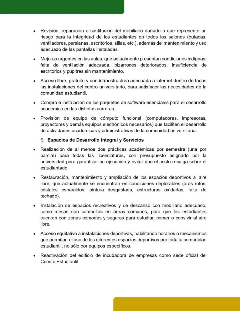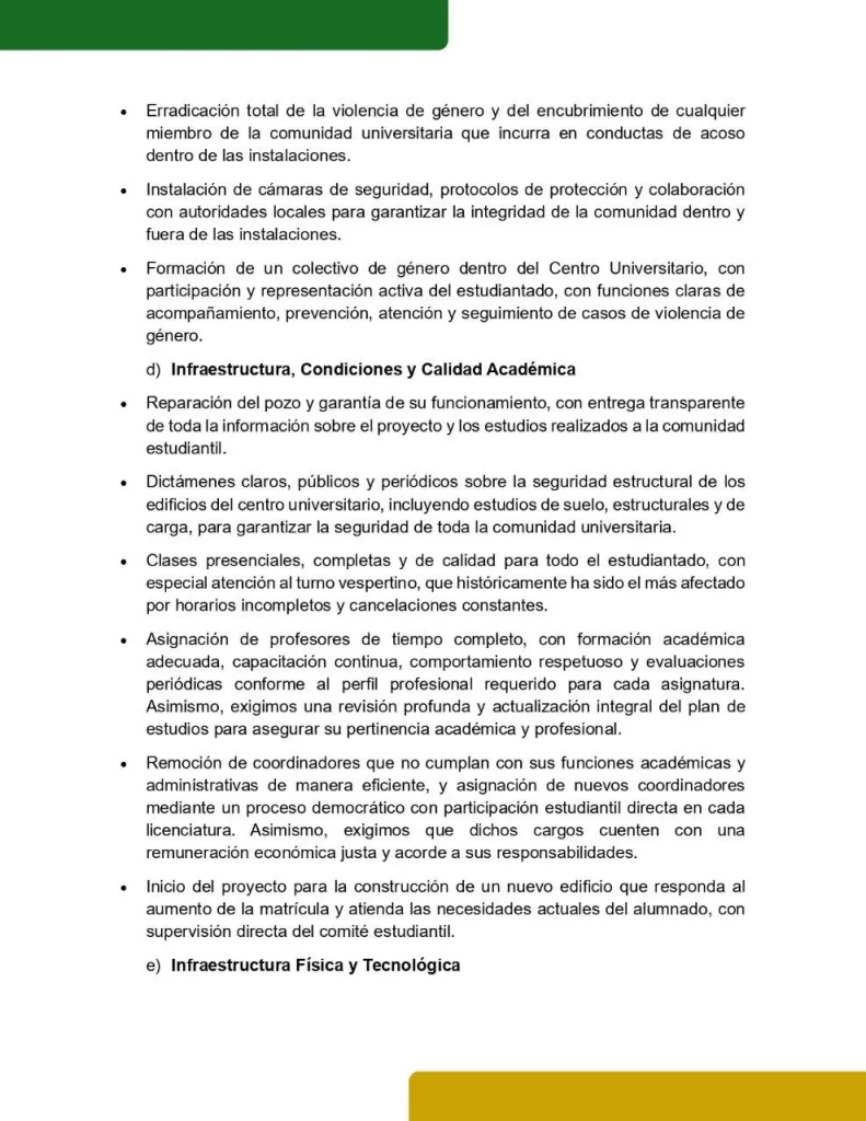 Este documento reúne las principales demandas políticas, académicas, administrativas y de seguridad que exigimos como comunidad. No son ocurrencias ni caprichos: son necesidades urgentes, históricas y legítimas.