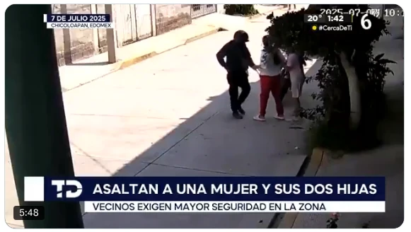 ▶️ Una mujer y sus dos hijas fueron asaltadas por un hombre armado en la colonia Portezuelos, en Chicoloapan. Vecinos identificaron al agresor como un bicitaxista de la zona.