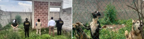 En un caso, derivado de una denuncia ciudadana, personal de la Fiscalía Edoméx y CEPANAF, realizaron una diligencia en un inmueble delimitado con malla ciclónica, ubicado en el municipio de Chicoloapan, donde fueron rescatados tres caninos, los cuales se encontraban en malas condiciones de higiene y salud, en situación de hacinamiento, abandono, desnutrición y no contaban con un lugar de alojamiento.