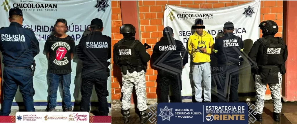 El Gobierno de Chicoloapan informó sobre 2 sujetos detenidos, en diferentes eventos, señalados por asalto a transporte publico y a transeúnte, respectivamente.