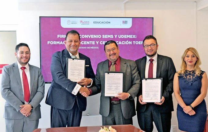 TOLUCA, Estado de México.– Con el objetivo de fortalecer la formación continua de docentes del Estado de México, la Subsecretaría de Educación Media Superior (SEMS) firmó un convenio de colaboración con la Universidad Digital del Estado de México (UDEMEX) que permitirá la profesionalización del personal en modalidad virtual.