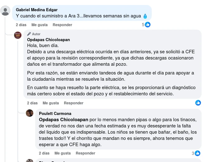 Tras cuestionar en el Facebook de OPDAPAS Chicoloapan sobre los constantes fallos en el pozo de Ara 3, el organismo emitió un comentario, donde detalla la situación.