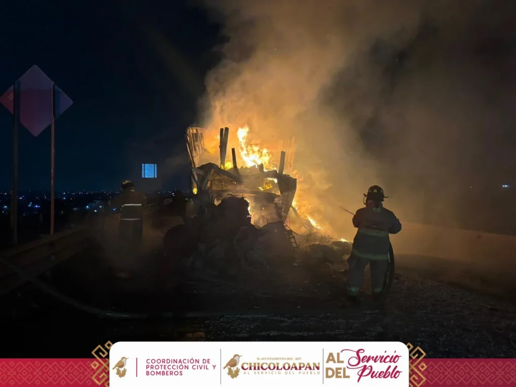 Durante la madrugada de este 02 de octubre de 2025, personal de la Coordinación de Protección Civil y Bomberos Chicoloapan, atendió el reporte de un incendio de tractocamión en el Circuito Exterior Mexiquense, kilómetro 73.