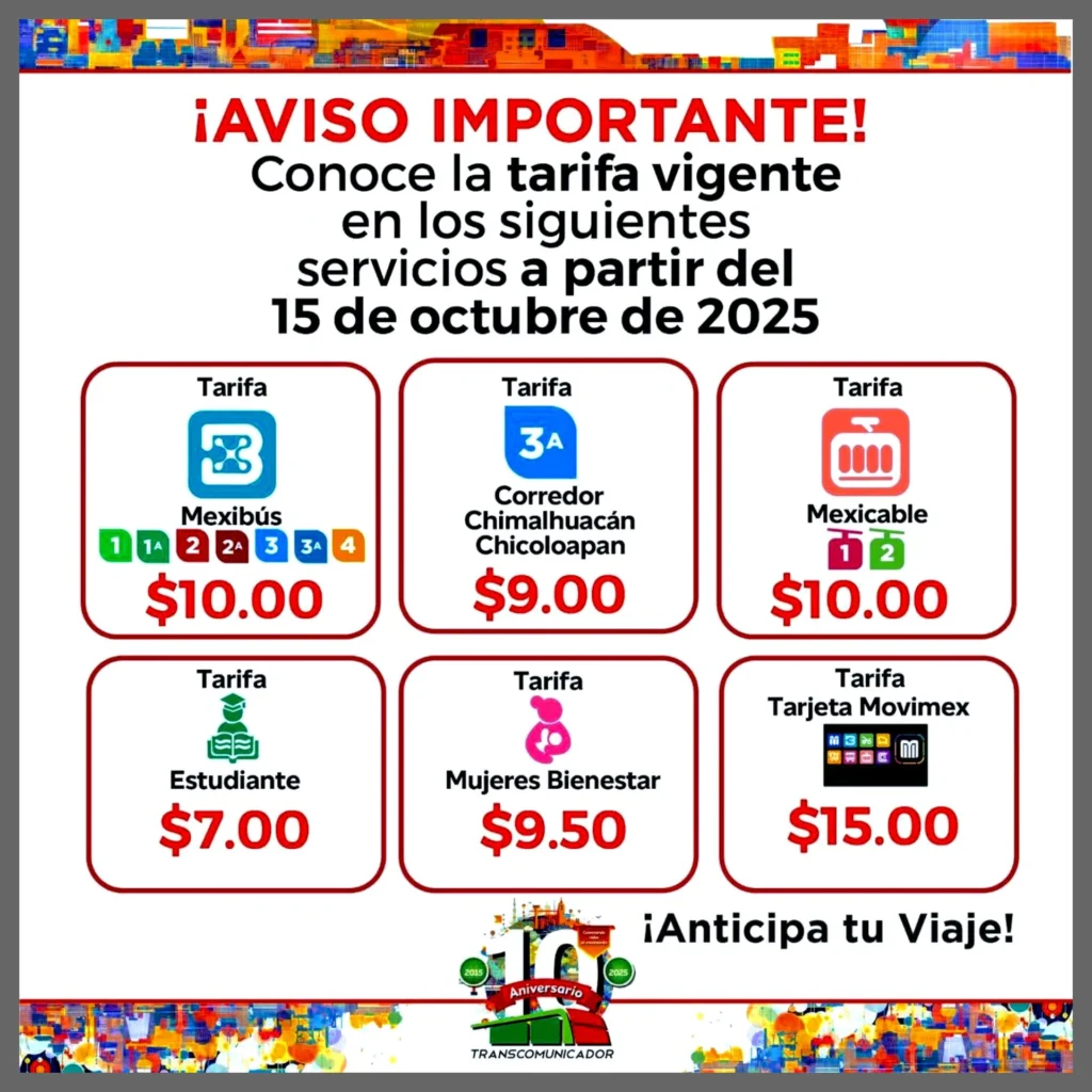 Por medio de carteles en sus instalaciones, el Mexibus y Mexicable informaron sobre sus nuevas tarifas que entraron en operación el 15 de Octubre, con ello se consuma la traición de la 4T en el Estado de México, al afectar a los más vulnerables.