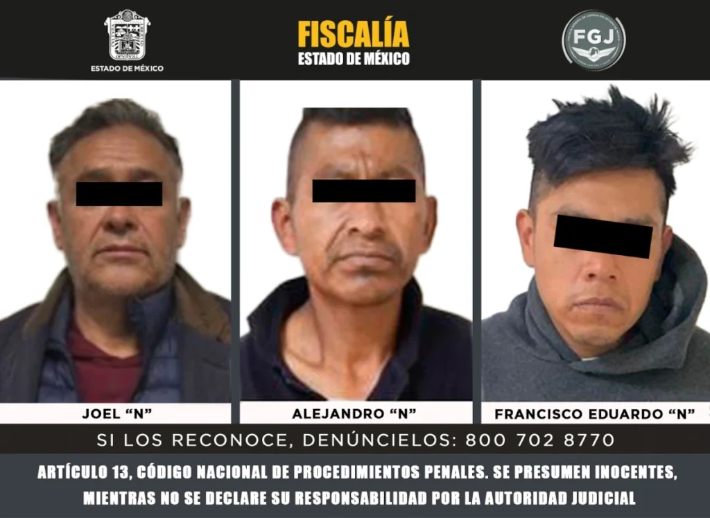 Chicoloapan, Estado de México, 26 de diciembre de 2025.- Tres sujetos identificados como Francisco Eduardo “N”, Alejandro “N” y Joel “N”, fueron vinculados a proceso luego de que la Fiscalía General de Justicia del Estado de México acreditara ante la Autoridad Judicial su posible participación en el delito de homicidio calificado.
