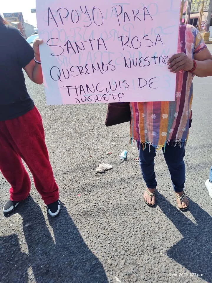 El día de ayer 4 de enero, vecinos de Santa Rosa que se instalan de manera tradicional en el tianguis de día de reyes, protestaron cerrando la carretera a la altura de las fuentes en protesta por la exigencia de cuotas irregulares que les exigían el grupo de choque del 1er regidor (los talibanes) para dejarlos vender.