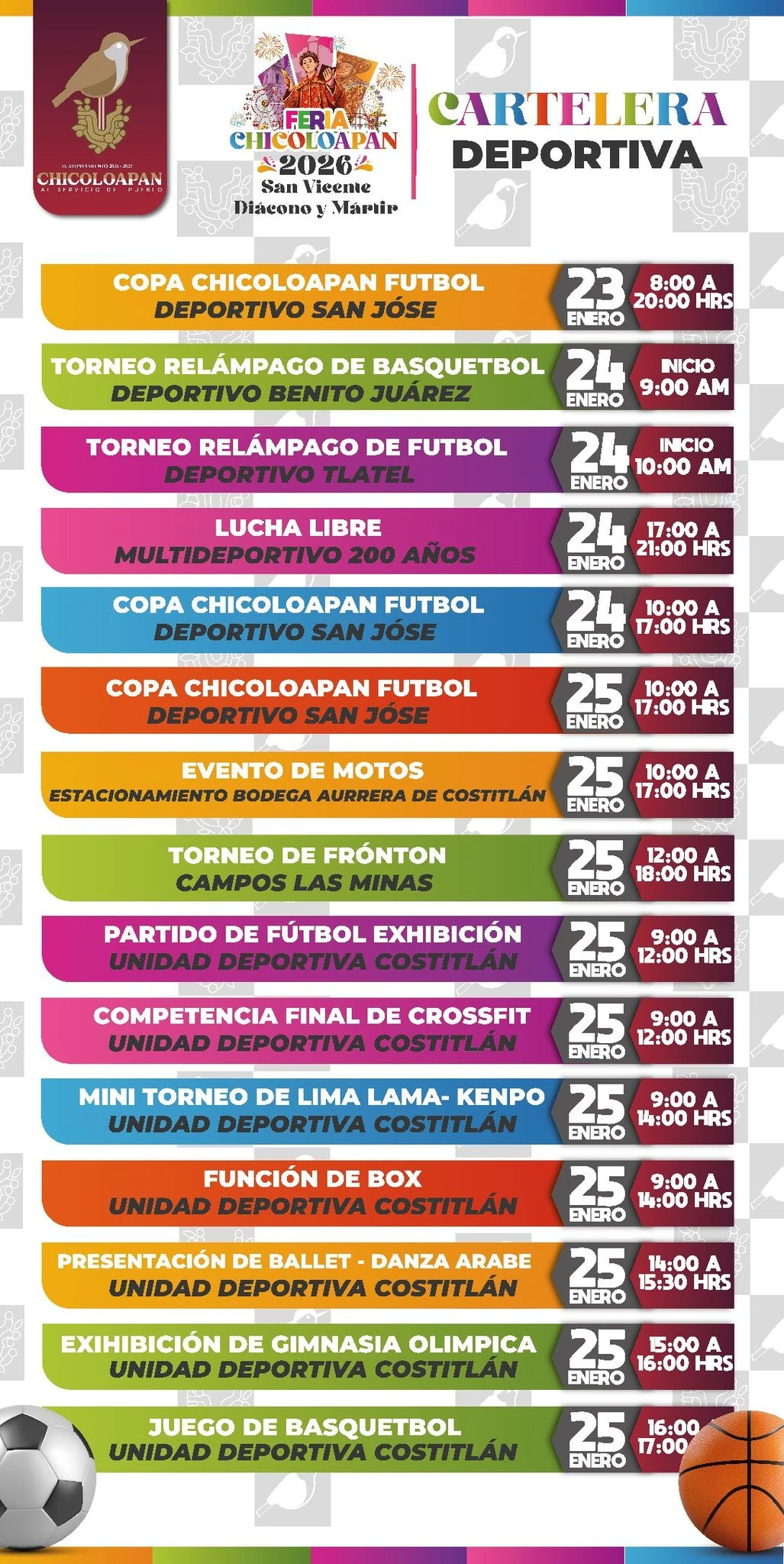 La parroquia de Chicoloapan difunde el cartel de la Fiesta Patronal de San Vicente Díacono y Martir 2026, ahí encontrarás todas las actividades religiosas.