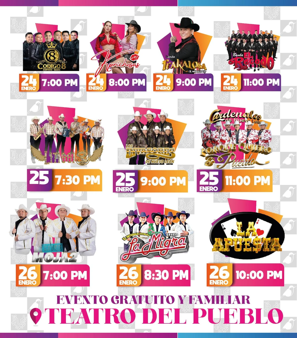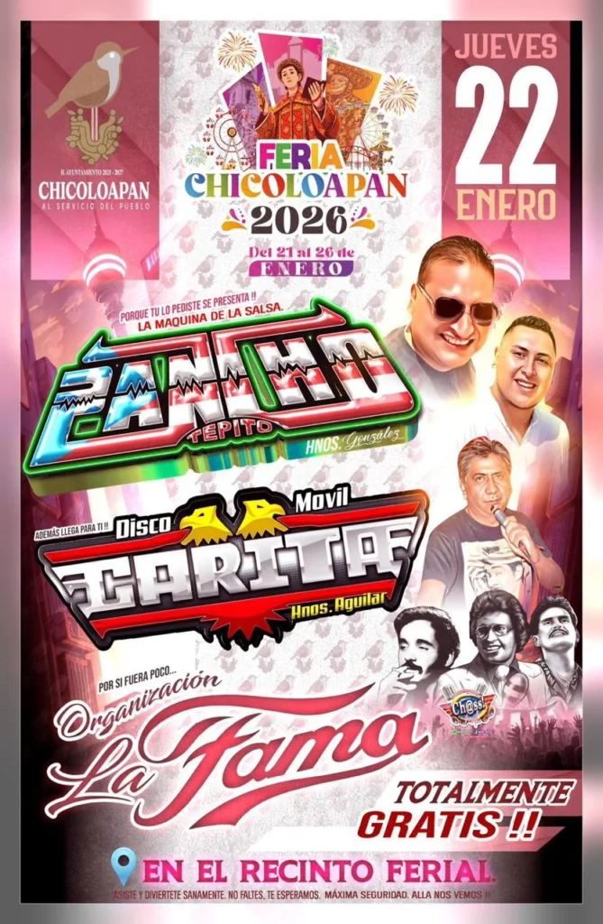 El cartel de los eventos que organiza el H. Ayuntamiento es el siguiente.