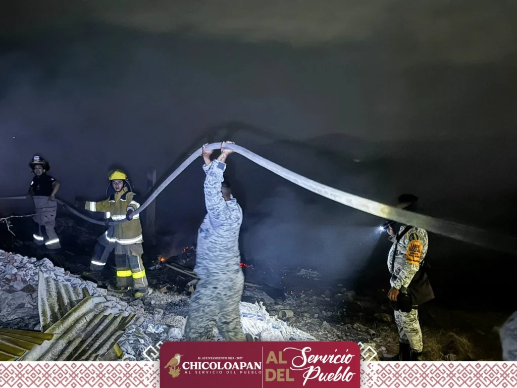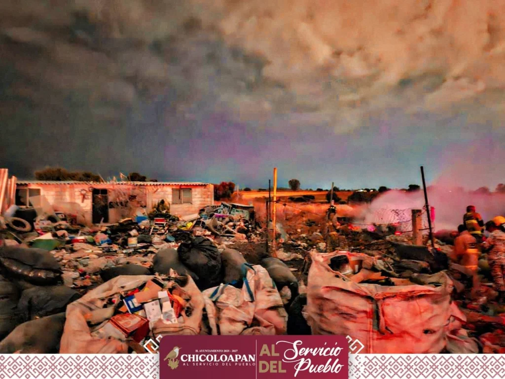 La tarde de hoy, 17 de enero de 2026, se atendió un incendio de pastizal y de un terreno utilizado como depósito de desperdicios industriales en la zona del Camino a la Mina El Zapote, en Ejidos de Chicoloapan.