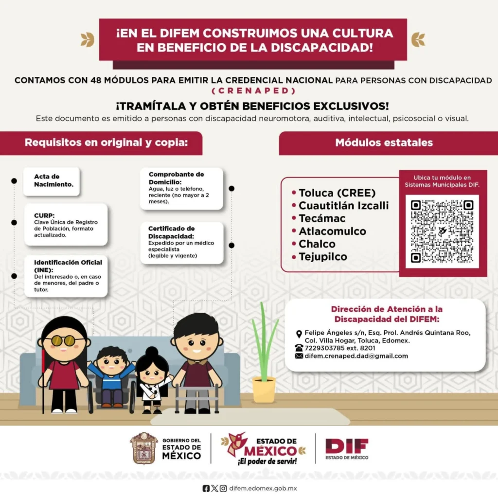 Actualmente operan 48 módulos de expedición en coordinación con los Sistemas Municipales DIF, ubica el tuyo en: https://difem.edomex.gob.mx/sites/difem.edomex.gob.mx/files/files/DIFEM/PDFs/Direct_%20CRENAPED_EdoMex_2025.pdf
