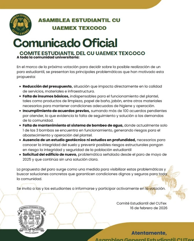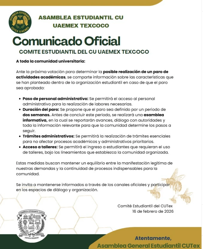 Tras un cerrada votación, ganó el Paro con 1,345 votos contra 1,159 en contra, debido a ello, las clases quedan suspendidas, sin embargo continuarán las actividades administrativas, así como los trámites para la comunidad escolar en total normalidad.