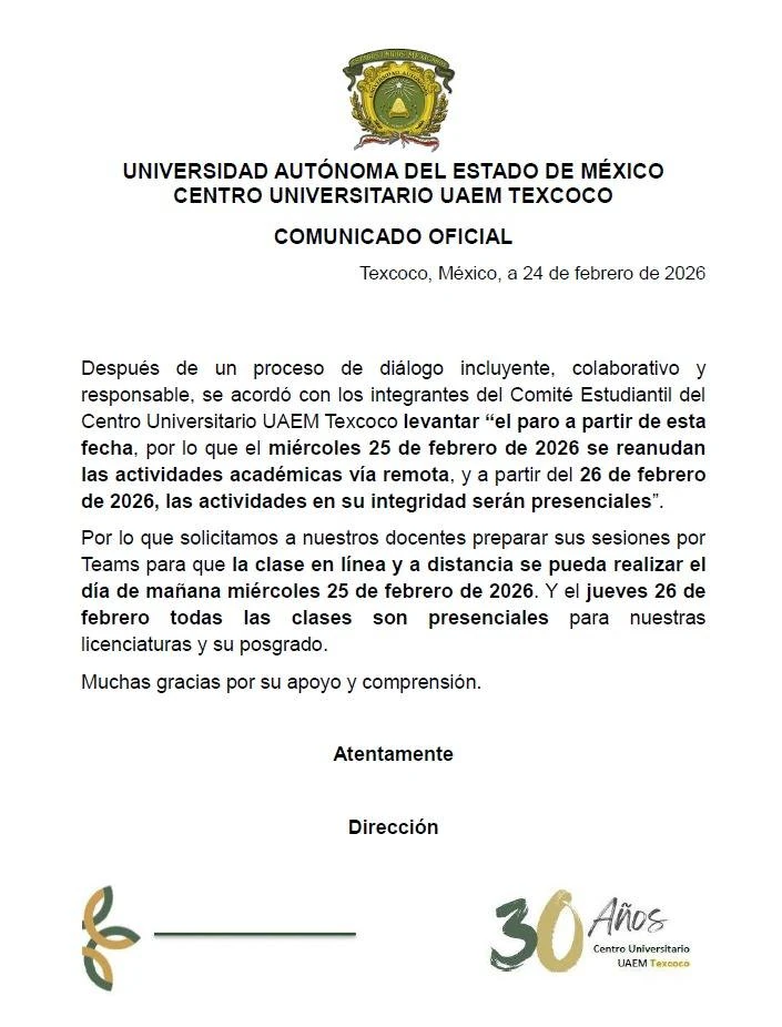 Estudiantes y autoridades de la UAEMex Texcoco acuerdan levantar el paro