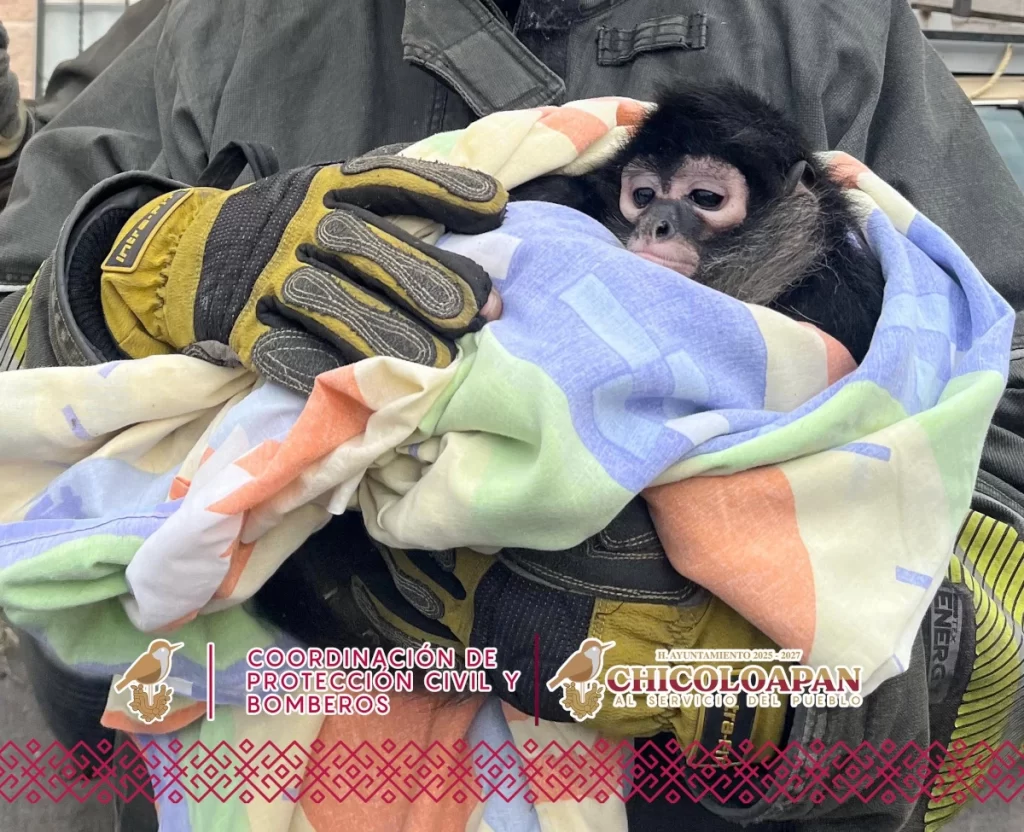 Bomberos de Chicoloapan rescatan a mono araña que se encontraba en Geo rondando en cables de electricidad, pero ¿de dónde salió?